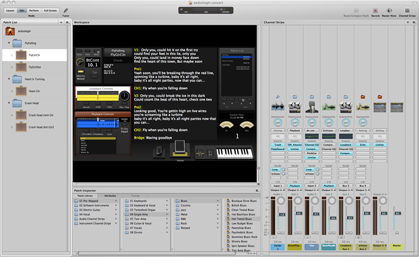 MainStage allows you to create your own user-interface – you can customise what you are looking at on the computer screen, and also create objects that will be controlled by whatever pedals, buttons, knobs, faders or keyboards you have connected to it in the real world.