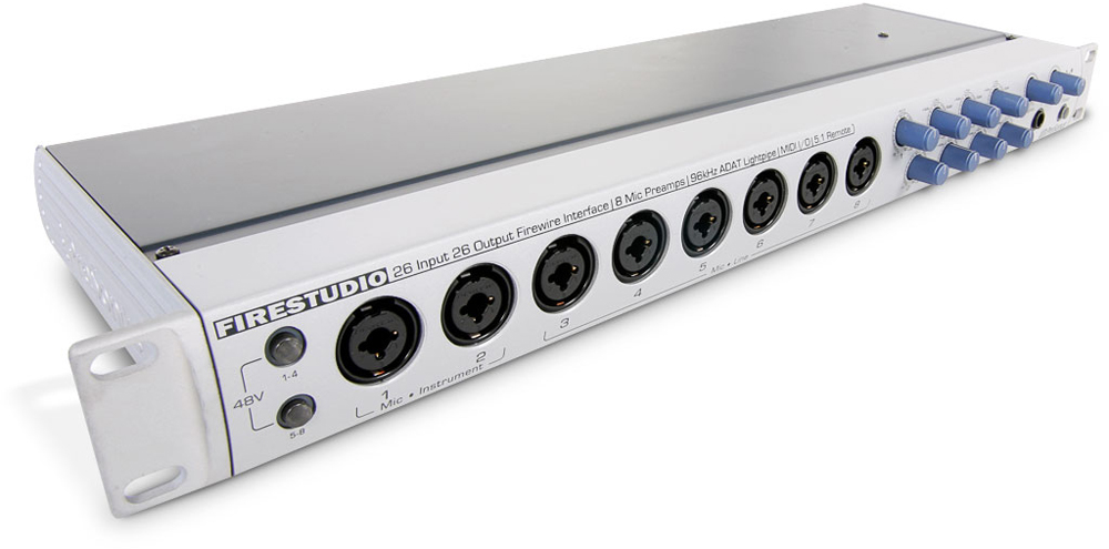 PreSonus Firestudio audio interface. It uses a FireWire connection, so has lower latency than most USB-based interfaces.